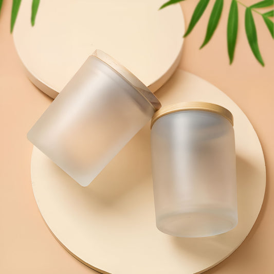 Customisable Frosted Glass Candle with Wooden Lid – Elegant and Eco-Friendly Home Décor